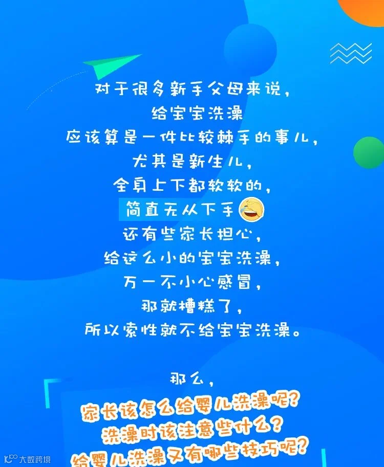 导读:对于很多新手父母来说,给宝宝洗澡应该算是一件比较棘手的事儿,龙其是新生儿,全身上下都软软的简直无从下手.........