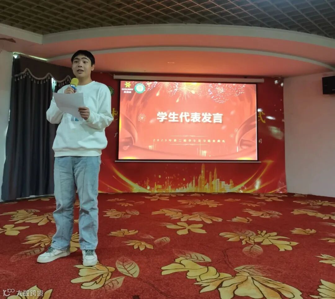 紧接着,优秀见习生袁兴盟在大会中给我们分享了自己的见习经历,他表示本次见习让他收获满满,充实而又难忘。在此,他特别感谢学校和企业给予同学们一个优秀的锻炼平台,感谢企业导师耐心指导在工作上遇到的问题,感谢学校老师热情的帮助他们渡过心态上的难关,让他们更加自信从容的面对生活和工作。