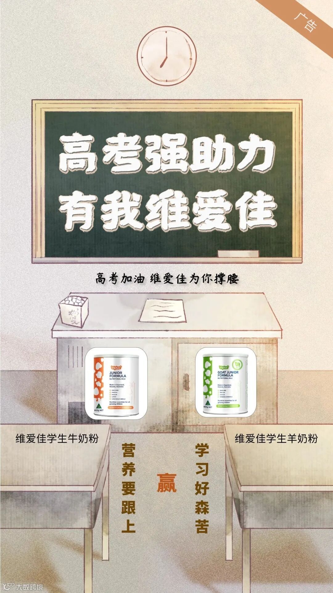 如果您家里或周边亲戚朋友家里恰好有马上参加高考的考生,不妨在文末留言,说说这届高考的方方面面,说说这届考生的“苦辣酸甜”。我们会抽取留言中获点赞数最高的6位,每位送上1份礼品(维爱佳奶粉试饮装一盒:内含20+全脂奶粉、20+脱脂奶粉和40+中老年奶粉条袋装各一个);小编们还会再评选出留言最精彩的6位,每位送上1份礼品(礼品同上)。