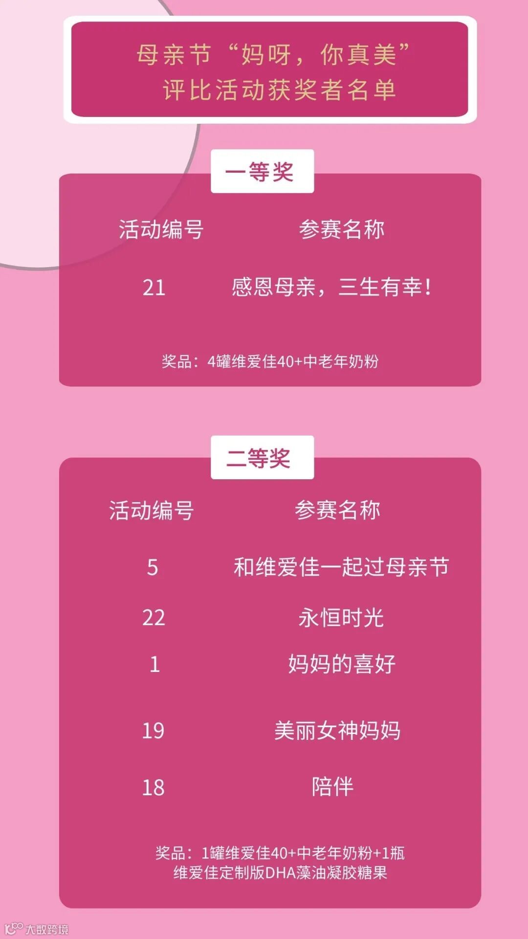 佳奖单 | 5.10母亲节活动获奖者名单在这里,美妈们收货了!