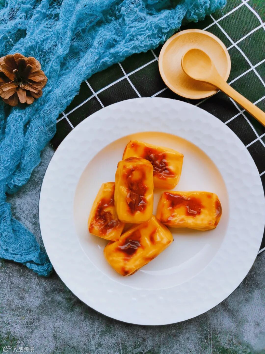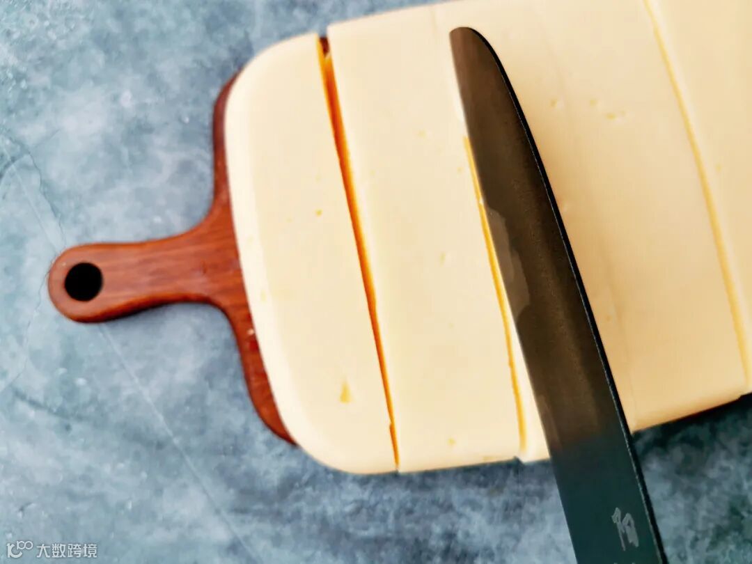 5、这里用的是方形模具,如果用圆形模具,可以按照切蛋糕的方式切成了三角形状。