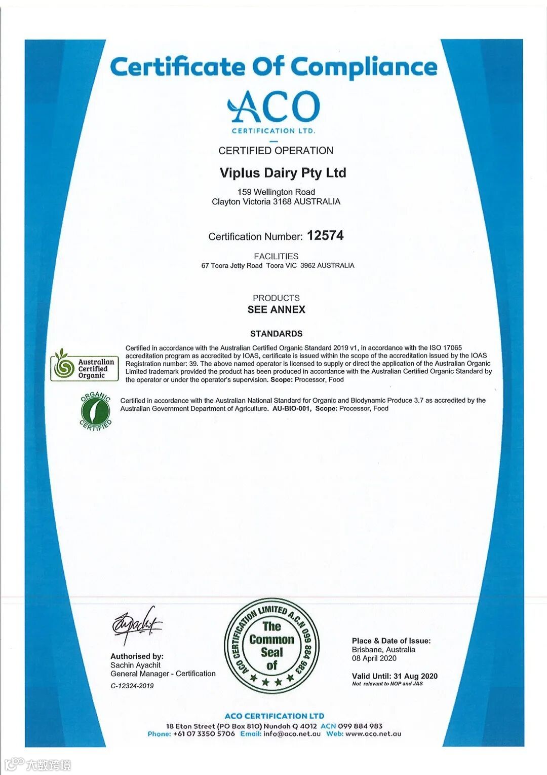 澳大利亚农渔林业部(DAFF)授权了7个官方组织来评估有机产品并颁发证书,Australian Certified Organic(ACO澳大利亚有机认证)为其中之一.