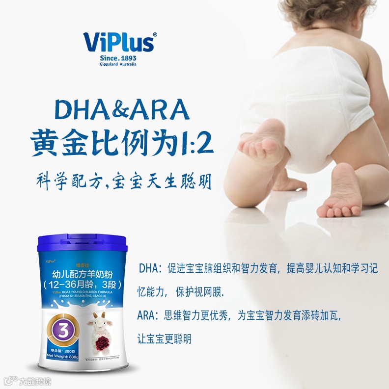 对于三岁以下的宝宝来说,奶粉还是最佳的营养来源,维爱佳婴幼儿羊奶粉,含有科学配比的DHA和ARA,合理配比的DHA与ARA有助于宝宝建立完善的大脑网络,给予宝宝聪明大脑更多能量,健康成长。