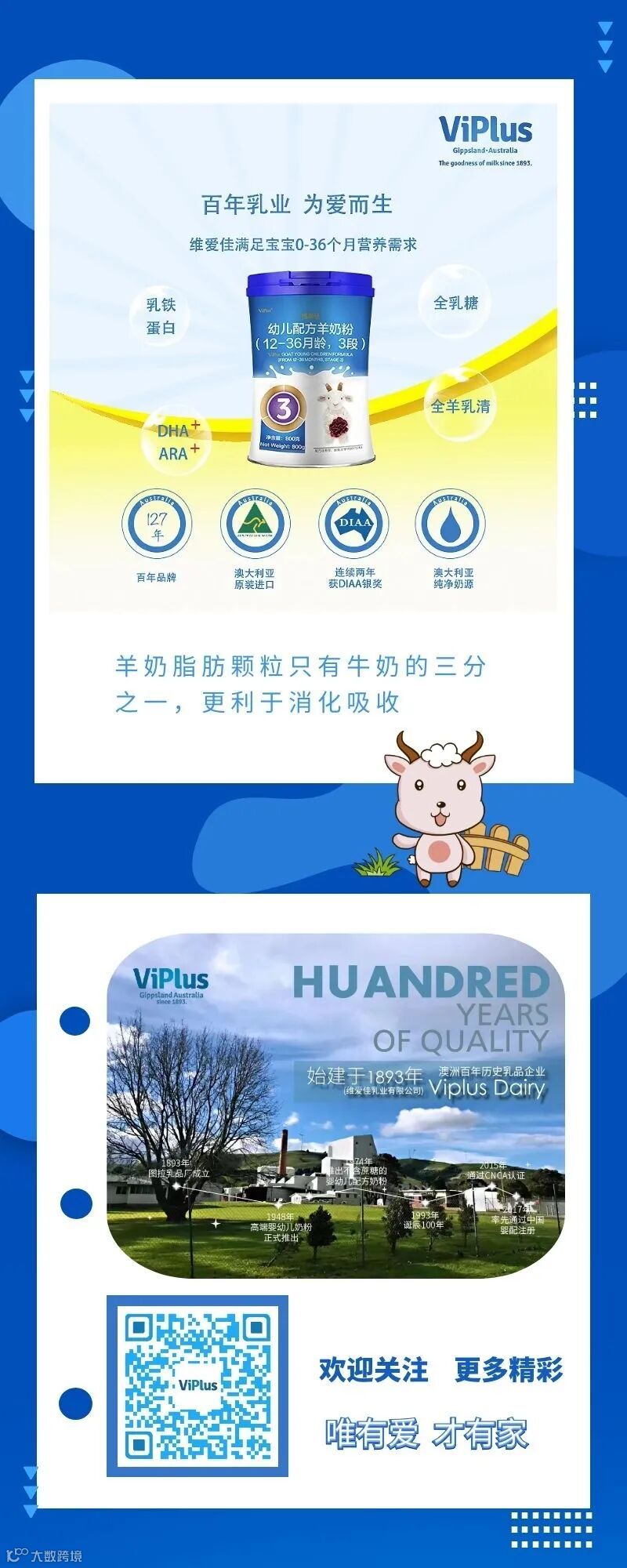 维爱佳,100%澳大利亚原装原罐进口婴幼儿配方奶粉。唯有爱,才有家!“维爱佳”呵护宝宝每一天!