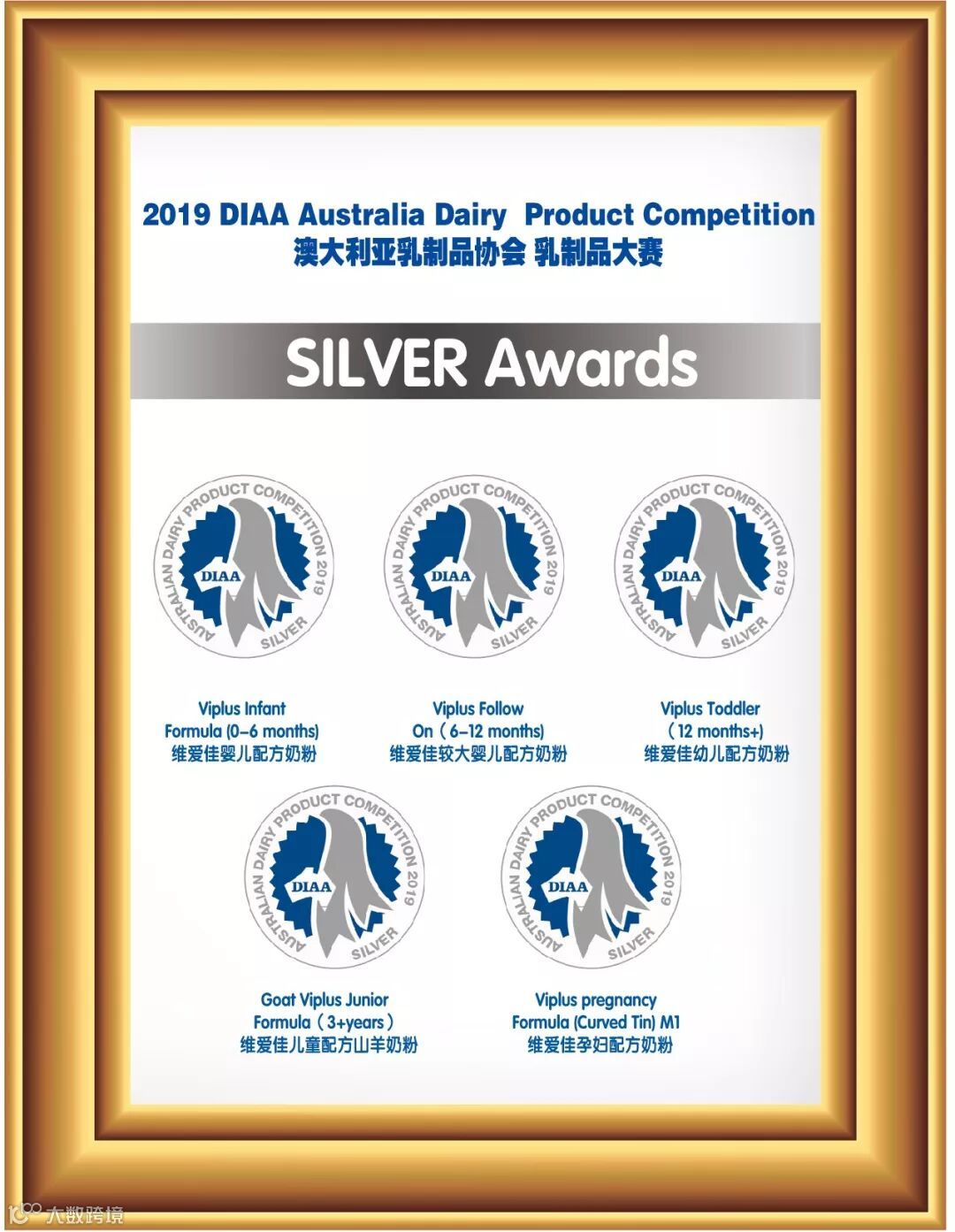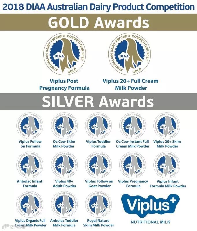 在近期举办的2019澳大利亚乳制品工业协会(DIAA)颁奖典礼上,经澳洲本地乳制品行业专家组成的专业团队从产品营养成分配比、口感、颗粒度、溶解度等多方面因素综合考量,维爱佳ViPlus乳业获得5项殊荣。