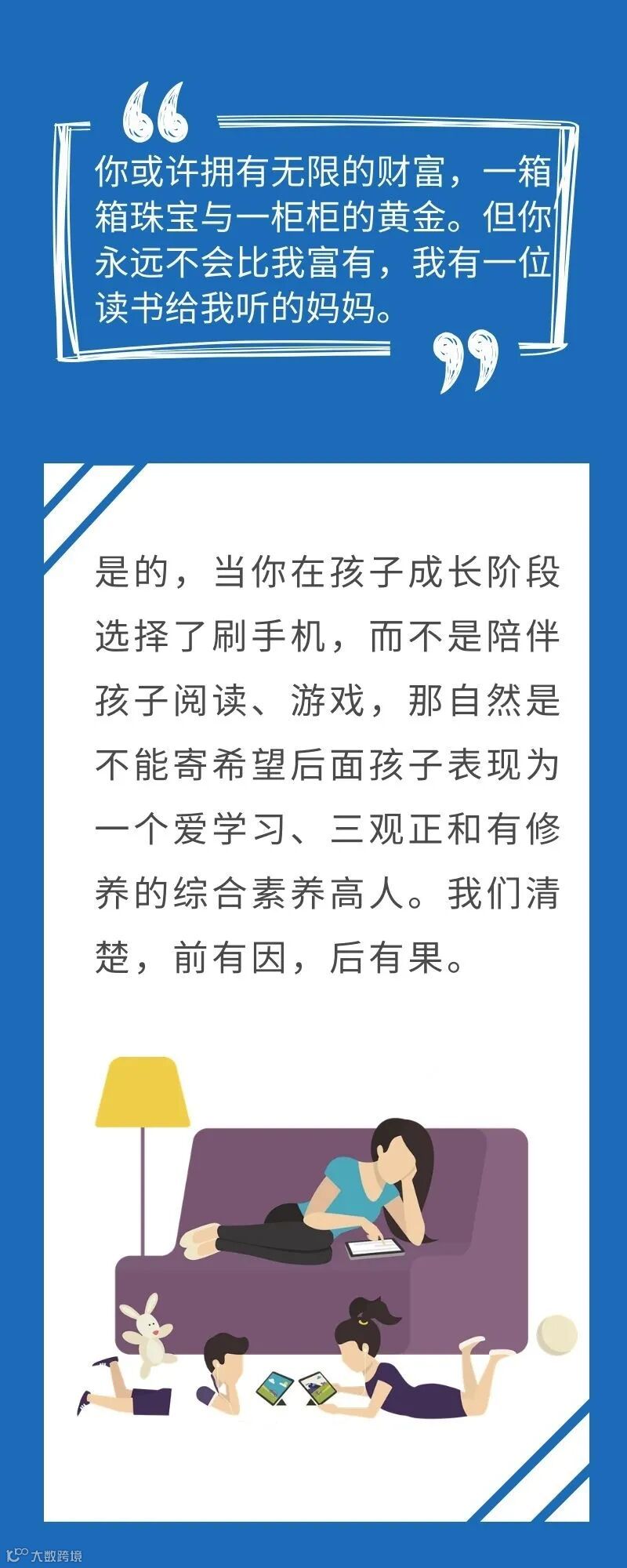 导读:“你或许拥有无限的财富,一箱箱珠宝与一柜柜的黄金。但你永远不会比我富有,我有一位读书给我听的妈妈。”
