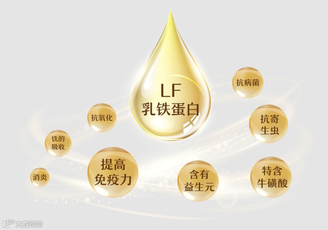 乳铁蛋白(lactoferrin,LF)是乳清蛋白的主要成分之一,占总乳蛋白的10%-15%,广泛分布在人乳汁和哺乳动物乳汁,是母体中非特异免疫系统的重要成员之一,是母乳中的核心免疫蛋白。