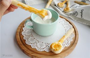 5、做好的勺子磨牙饼干可以用来吃米糊,边吃米糊边磨牙。