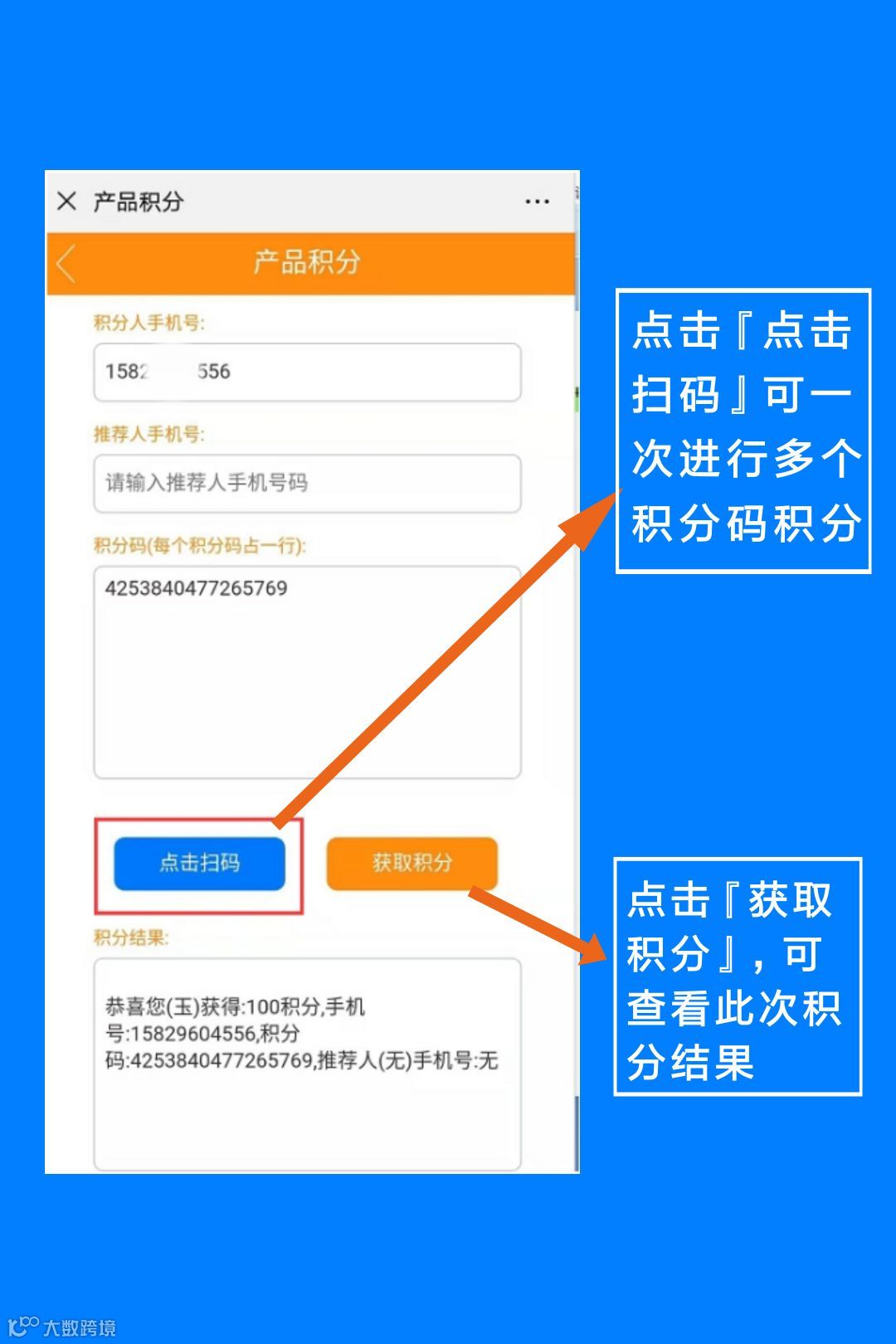 点击扫码可一次进行多个积分码积分