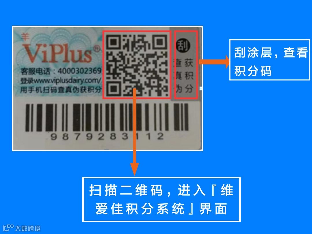 从左上角标识“揭”字的部分轻轻揭起第一层,扫描标签第二层右上角二维码,进入【维爱佳积分系统】页面