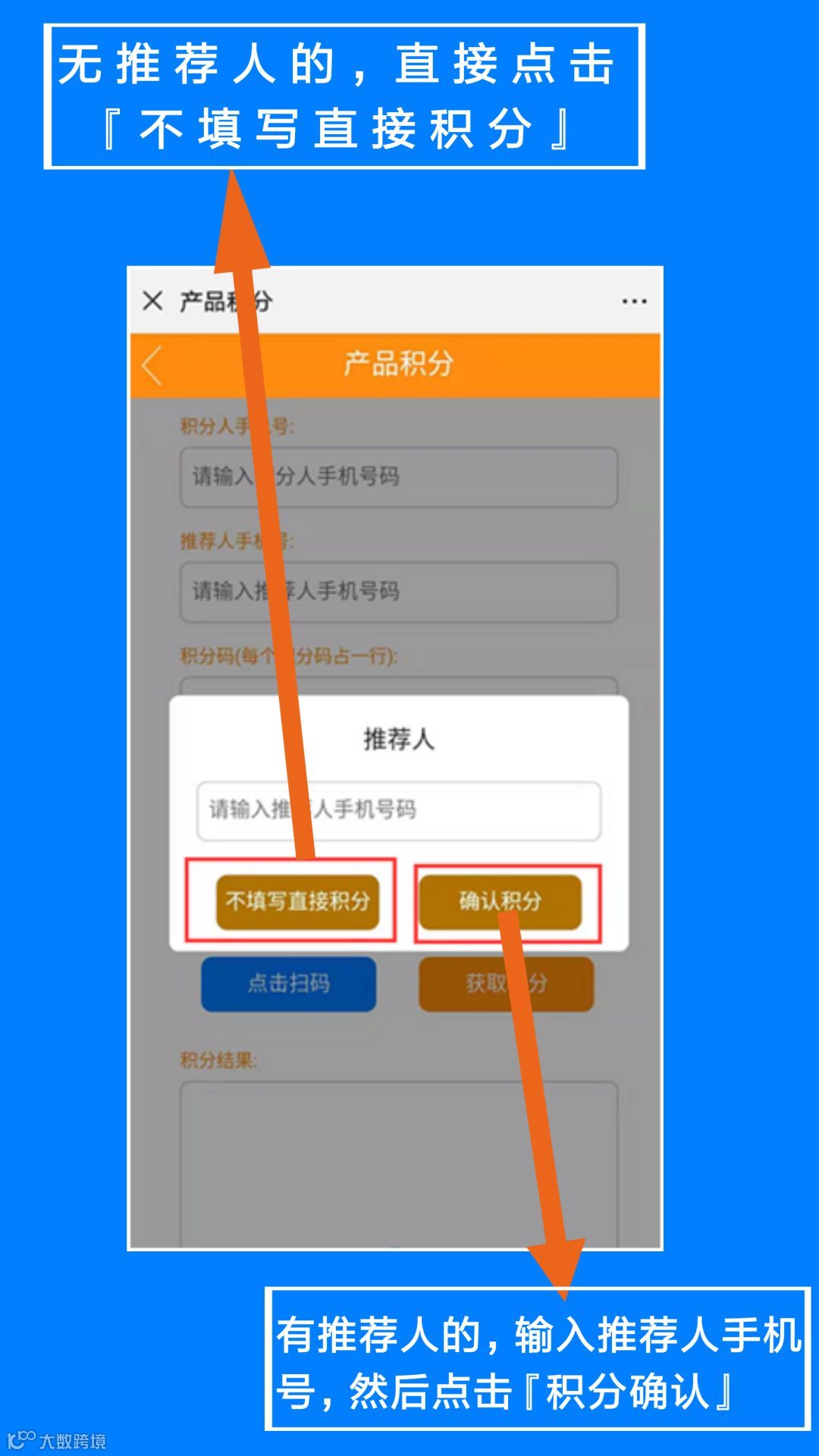 有推荐人,输入推荐人手机号,然后点击【确认积分】