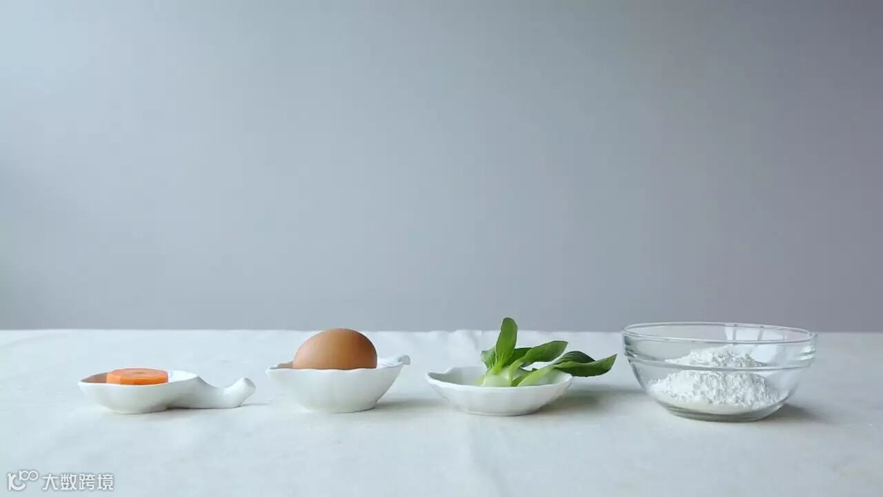 ⊙食材:中筋面粉20克 胡萝卜20克 青菜三片 鸡蛋一个(食材的分量只代表制作量,不代表宝宝的添加量哦!)