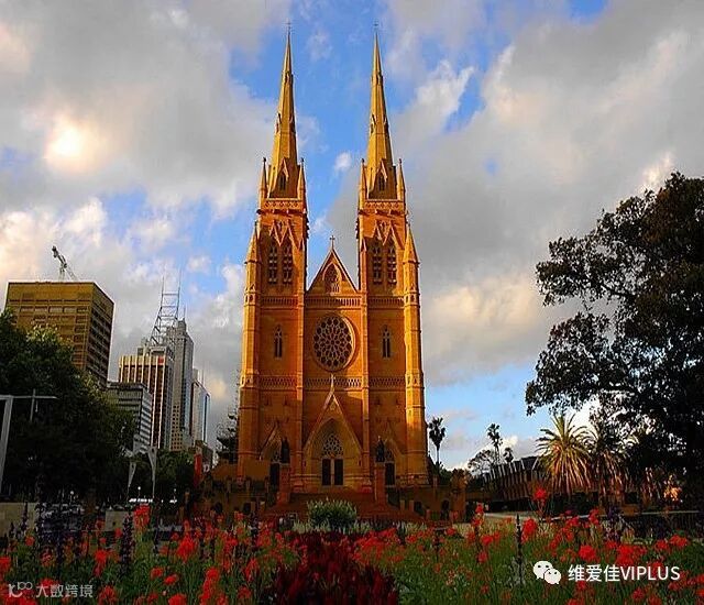 圣玛丽教堂:悉尼海德公园附近的圣玛丽大教堂是悉尼天主教社区的精神家园。“哥特式”的建筑风格是欧洲中世纪大教堂的建筑遗风。