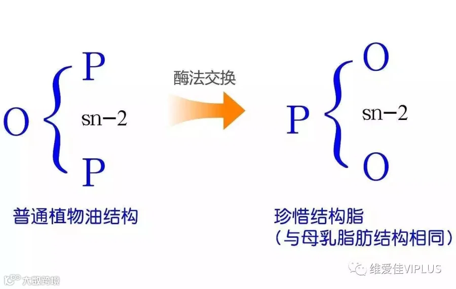 结构脂OPO实际上就是一种结构化脂肪,通过酶法脂交换技术模拟母乳脂质分子结构,使2位棕榈酸比例高达40%以上,更接近母乳水平。母乳中大部分能量是以脂肪形式存在的,母乳中脂肪高达70%的棕榈酸连在2位上,而不饱和脂肪酸主要连接在1、3位上,即O-P-O结构,这种结构脂肪,经过消化吸收后,优先释放出来1、3位上的不饱和脂肪酸很容易被肠道吸收进入到血液中,2位上的棕榈酸也很容易被肠道所吸收。