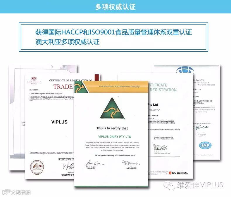 Viplus(维爱佳)乳制品厂始建于1893年,迄今为止已有120多年历史,是澳大利亚最早专业从事婴幼儿配方奶粉生产研发的著名乳企之一。曾被墨尔本皇室钦点为唯一奶粉及乳制品供应工厂。