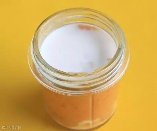 步骤4:奶粉冲调好后倒入红薯泥中。