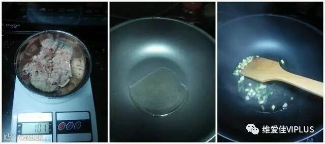 4.准备好五花肉馅(不要太瘦,否则糯米饭就不好吃咯)锅里加入少许油,放入姜米,葱花炒香。