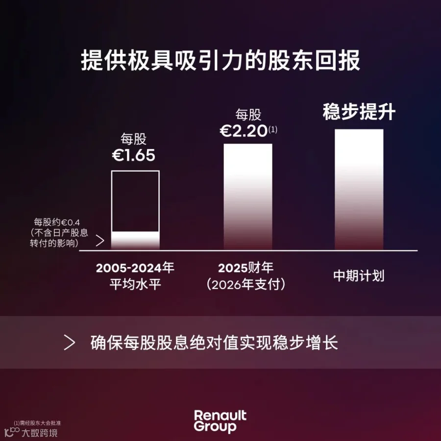 在ROCE方面,雷诺集团的目标是在中期实现接近25%的高资本回报率。这一目标将依托其轻资产组织架构、严格的研发及资本支出管理,以及对价值创造型业务的持续聚焦来实现。