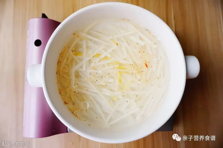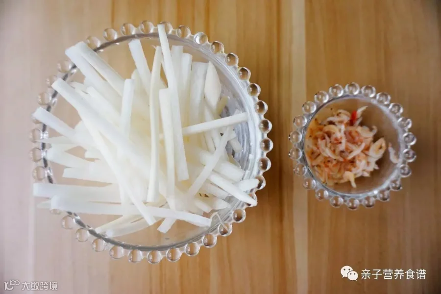 PS:因为白萝卜本身味道比较甘甜,加上虾皮的鲜香,不用放盐或其它调味料也很好吃;针对比较挑食的宝宝,可少量放点盐;