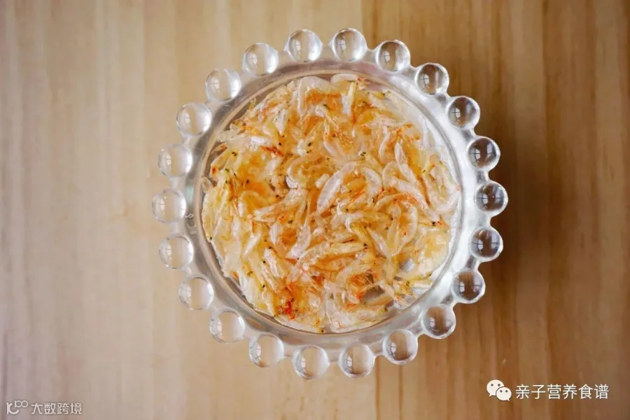 PS:虾皮用温水浸泡可去掉沙子、蛋白质分解物、部份水溶性亚硝胺和盐,让宝宝食用更安全;至少保证30分钟的浸泡比较安全;