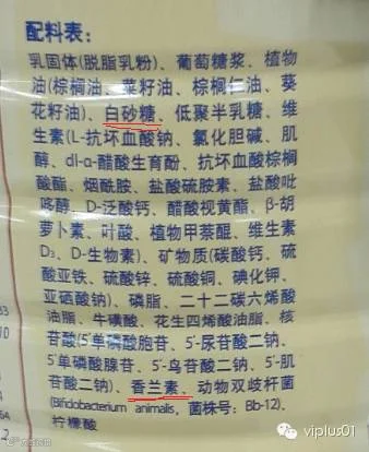 其实只要稍稍注意一下奶粉的外包装,就会发现奶粉“香气袭人”的秘密——各种人工添加剂。我国《食品安全国家标准食品添加剂使用标准》规定,凡使用范围涵盖0至6个月的婴幼儿配方食品,均不得添加任何食用香料,但是较大婴儿和幼儿配方食品中,则可以限量使用香兰素、乙基香兰素和香荚兰豆浸膏等人工香料。