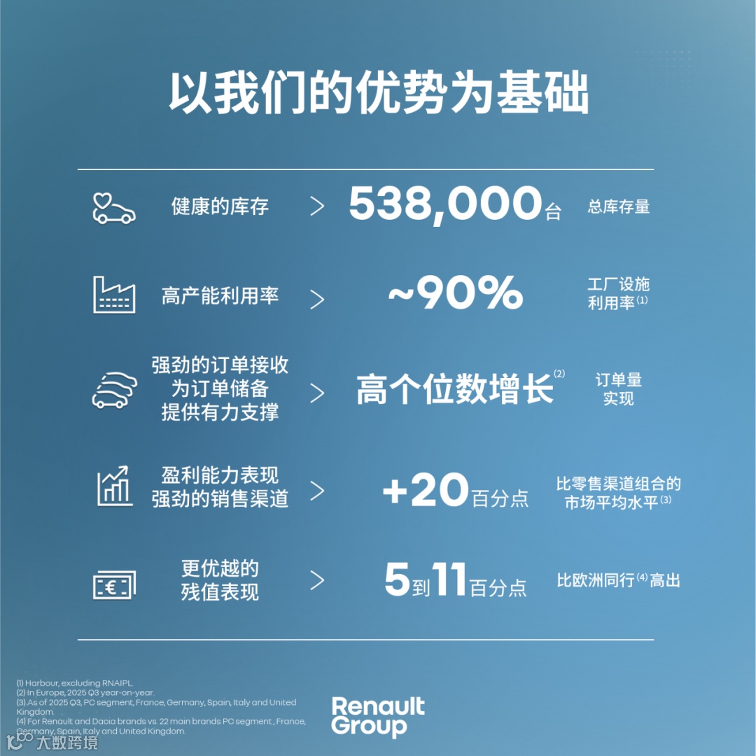 截至2025年9月底,雷诺和达契亚品牌的残值整体保持稳定,相比主要竞争对手高出5至11个百分点。