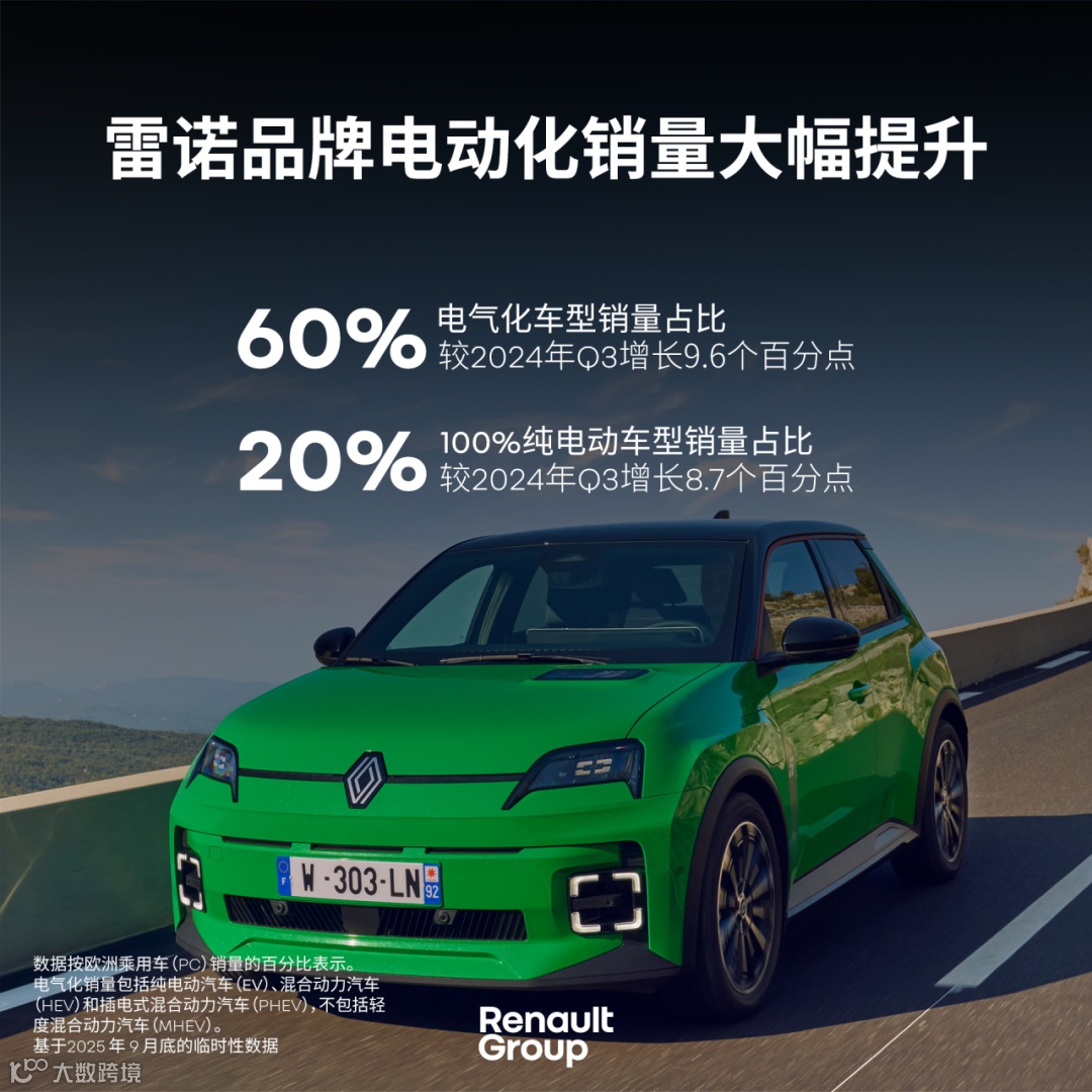 2025年第三季度,雷诺品牌销量达361,575辆车,同比增长6.6%。