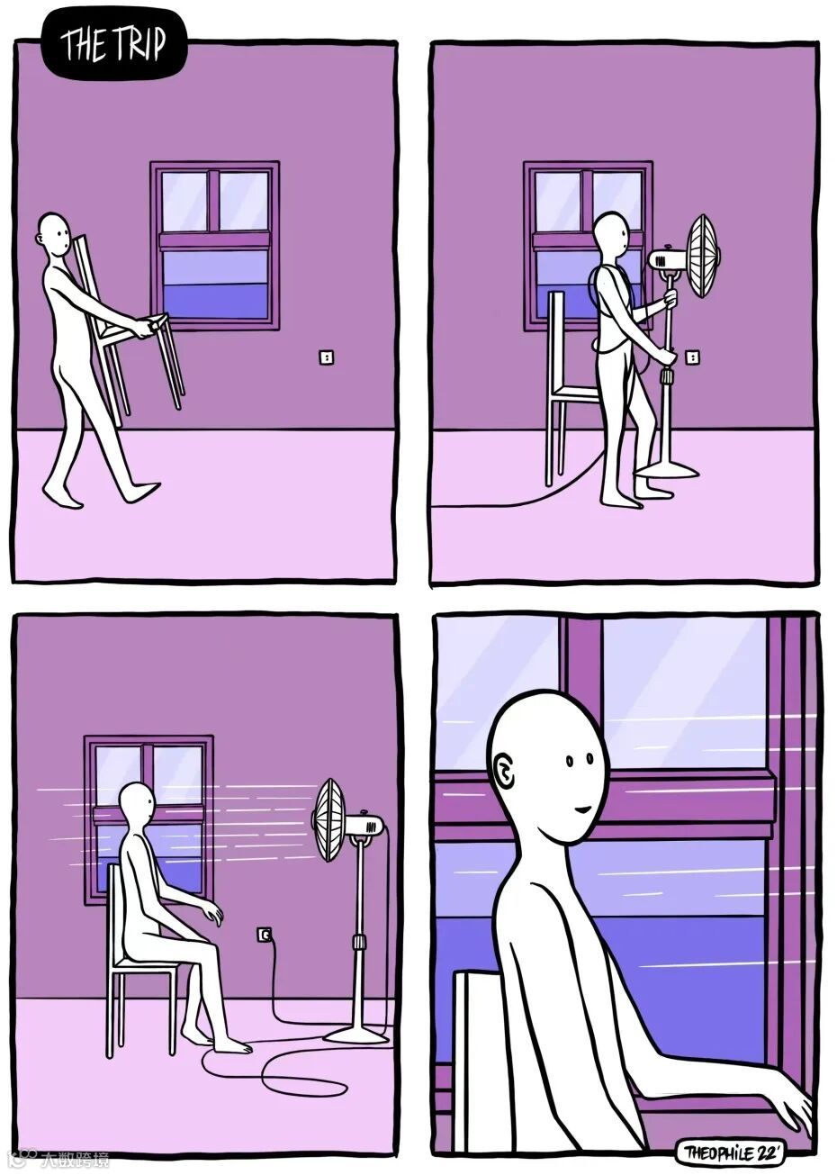 法国艺术家Théophile Signard坚持用笔触表达着自己对城市的感情和居民生活的观察。此次受雷诺邀请创作的系列漫画更是以柔和色彩、简约线条描绘了当下炎热的暑期生活,复刻了人们在燥热酷暑下,仍能自得其乐、寻找内心平和的状态。