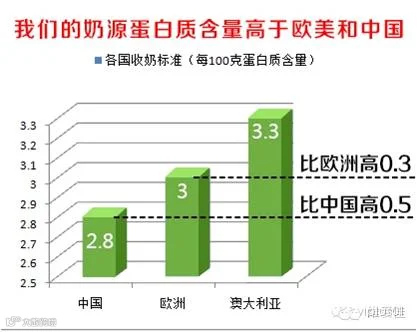 5、每100g鲜奶蛋白质含量达3.3%以上,远高于欧盟国家及中国。