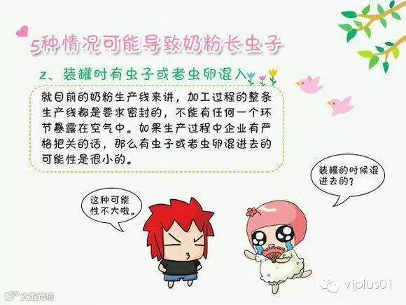 在奶粉制造过程中,无论是灭菌,还是除水、干燥都需要高达几百度的温度来完成。这样的环境下,生活中常见虫子、虫卵,能够存活的几率很低。另外,从生产线来看,虫卵混进去的可能性也是很小的。而且从先前出现虫子案例来看,生产环节导致的可能性几乎不存在。