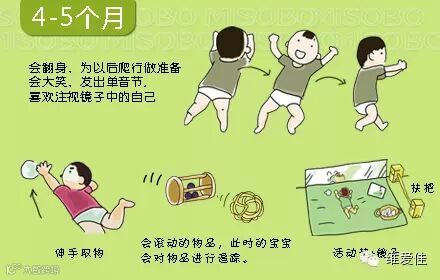 4—5个月:会翻身,会大笑,喜欢注视镜子中的自己