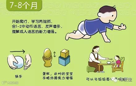 7—8个月:开始爬行、发出的声音增多,理解成人语言的能力增强