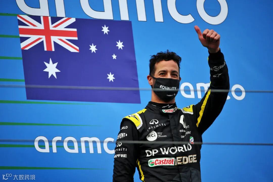 10月11日,在纽博格林举行的F1艾费尔大奖赛中,丹尼尔•里卡多荣获第三。阔别十年之久后,雷诺F1车队以全新的面貌,在2020赛季中首次登上F1世界锦标赛的领奖台。