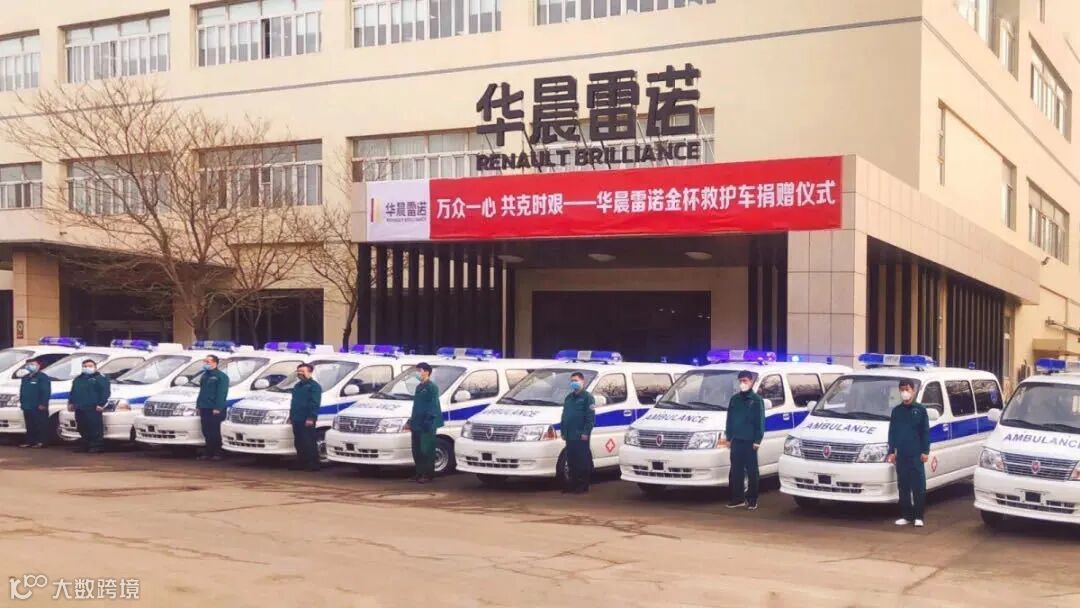 2月13日,华晨雷诺金杯向沈阳红十字会捐赠10辆救护车;
