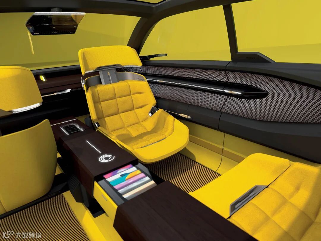 为了实现这一点,对称的前排乘客座椅可以完全向后旋转。乘客可以使用跨车厢的中控台以及上面的巨大屏幕,就像坐在家中的客厅里一样。