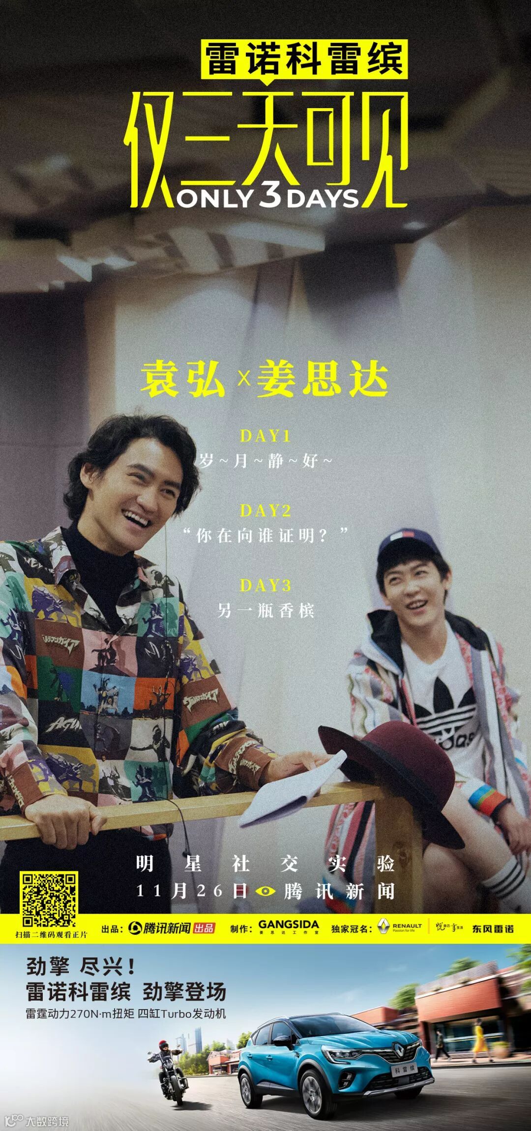 每个人都有自己的人生色彩,或浓墨重彩,或清淡如云,但袁弘的人生是哪个颜色?姜思达带着这个疑问迎来了我们第四期雷诺科雷缤《仅三天可见》的探索实验。