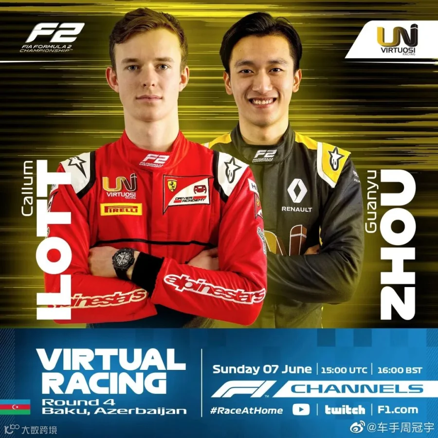 从F1虚拟大奖赛巴林站冠军、F1虚拟大奖赛中国站季军、F2虚拟大奖赛西班牙站冠军,再到上周日的阿塞拜疆站季军,冠宇用实力让全球车迷们看到中国车手的巨大能量!