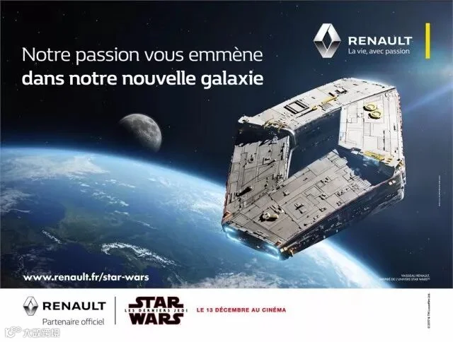 雷诺与《星球大战》的渊源颇深。同样是在1977年,当雷诺在银石赛道上推出R.S.01赛车,开始F1征程的时候,《星球大战》的第一部电影《新希望》(The new hope)面世。