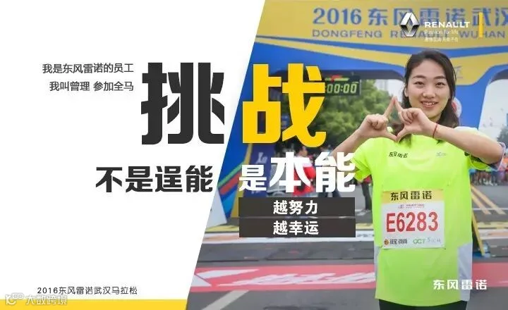 首届东风雷诺武汉马拉松用激情引爆了江城,而作为东道主,东风雷诺的小伙伴们自然不甘落后,员工跑团在马拉松跑道上挑战自我,挥洒热情,用留在跑道上的汗水告你什么是“激情生活,无处不在”!