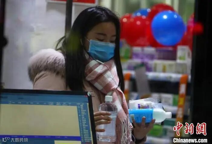 市民在药店购买口罩、消毒杀菌用品等防护产品。