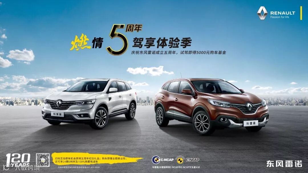 今年是雷诺品牌创立120周年。作为全球历史最悠久的五大汽车品牌之一,120年来,雷诺不断以激情挑战现状,将“悦心设计”、“暖心科技”、“安心畅行”三大品牌承诺深化到每一款产品中,为用户带来独一无二的驾驶乐趣与自由的同时,也为用户创造了更美好的用车生活,使“Passion for life”的品牌主张深入人心。