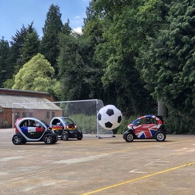 参与世界杯,还有更别致的玩法。比如雷诺运动F1车队旗下的电竞战队Team Vitality 就与雷诺运动学院的车手开着雷诺Twizy电动车上演了一场汽车足球赛,小汽车和大足球相映成趣。