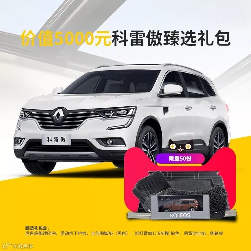 10月24日起,提前在东风雷诺天猫旗舰店拍付科雷傲与科雷嘉车型499元定金宝贝,在购车时不仅可以直接抵扣499元的车款,还可获得500元的天猫十周年定制礼(油卡),就是这么简单!