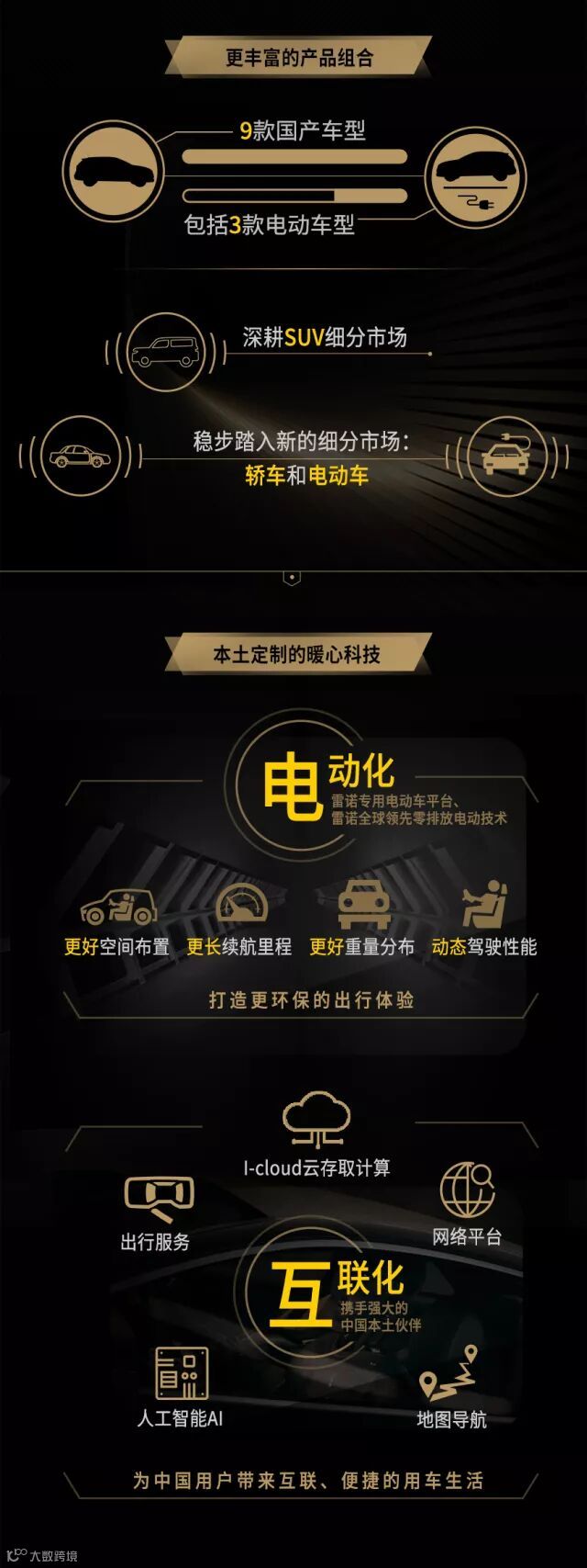 雷诺集团成立于1898年,旗下拥有三大品牌 —— 雷诺(Renault)、达契亚(Dacia)、Alpine,在全球130多个国家销售汽车并坚持为客户提供可持续和创新的移动出行解决方案。