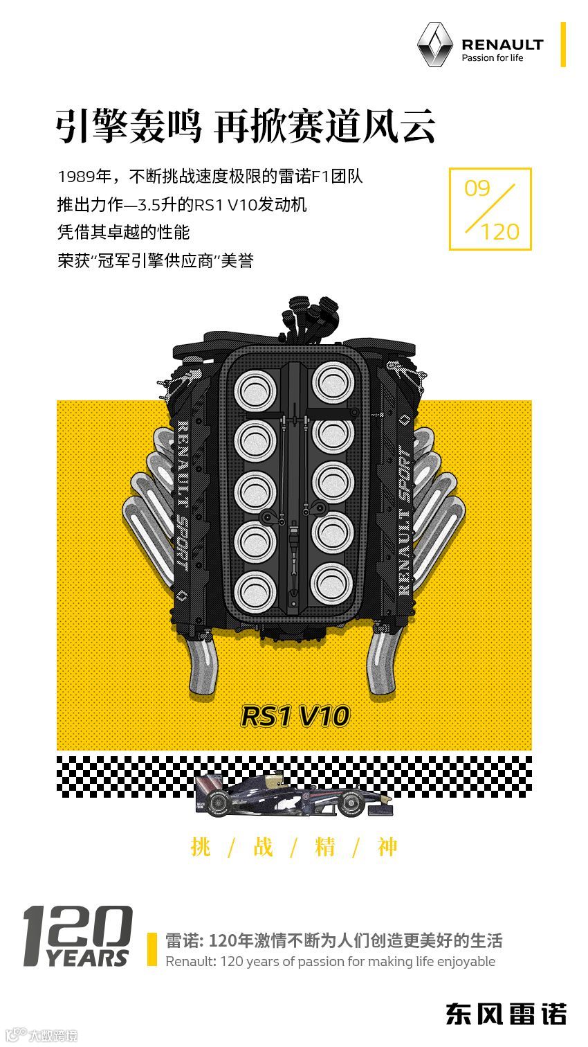 引擎轰鸣,雷诺F1越过一座座山峰直至登顶