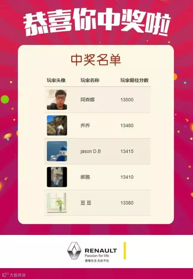 我们“看雷诺,拼汽车,我和你拼了”游戏上线以来,排行榜常刷常新,大家不仅感受了游戏的乐趣,更可以欣赏雷诺汽车的美图。