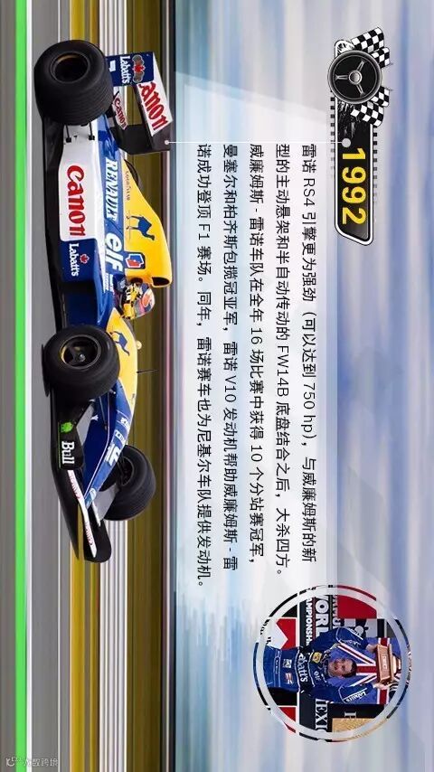 请锁定横屏,看看雷诺1987年至1996年,尤其是1992年至1996年期间在F1赛场上连续五年九次夺冠的辉煌!