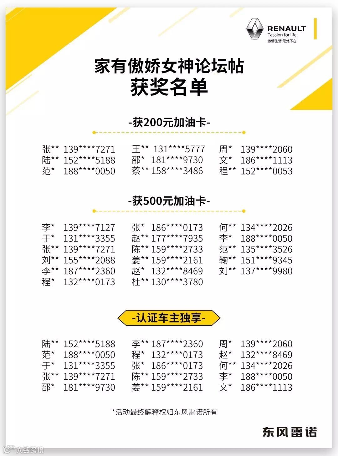 4、活动最终解释权归东风雷诺所有。