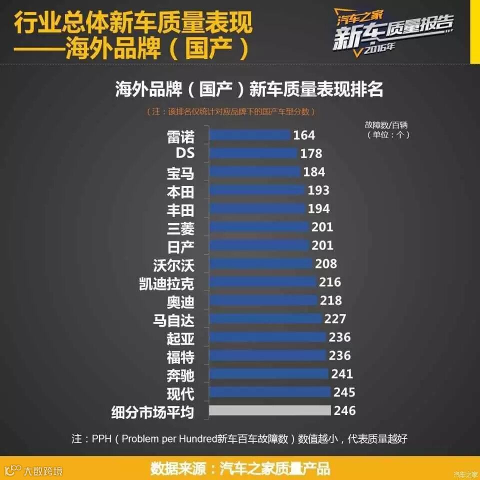 海外品牌(国产)新车质量表现排行榜榜首,