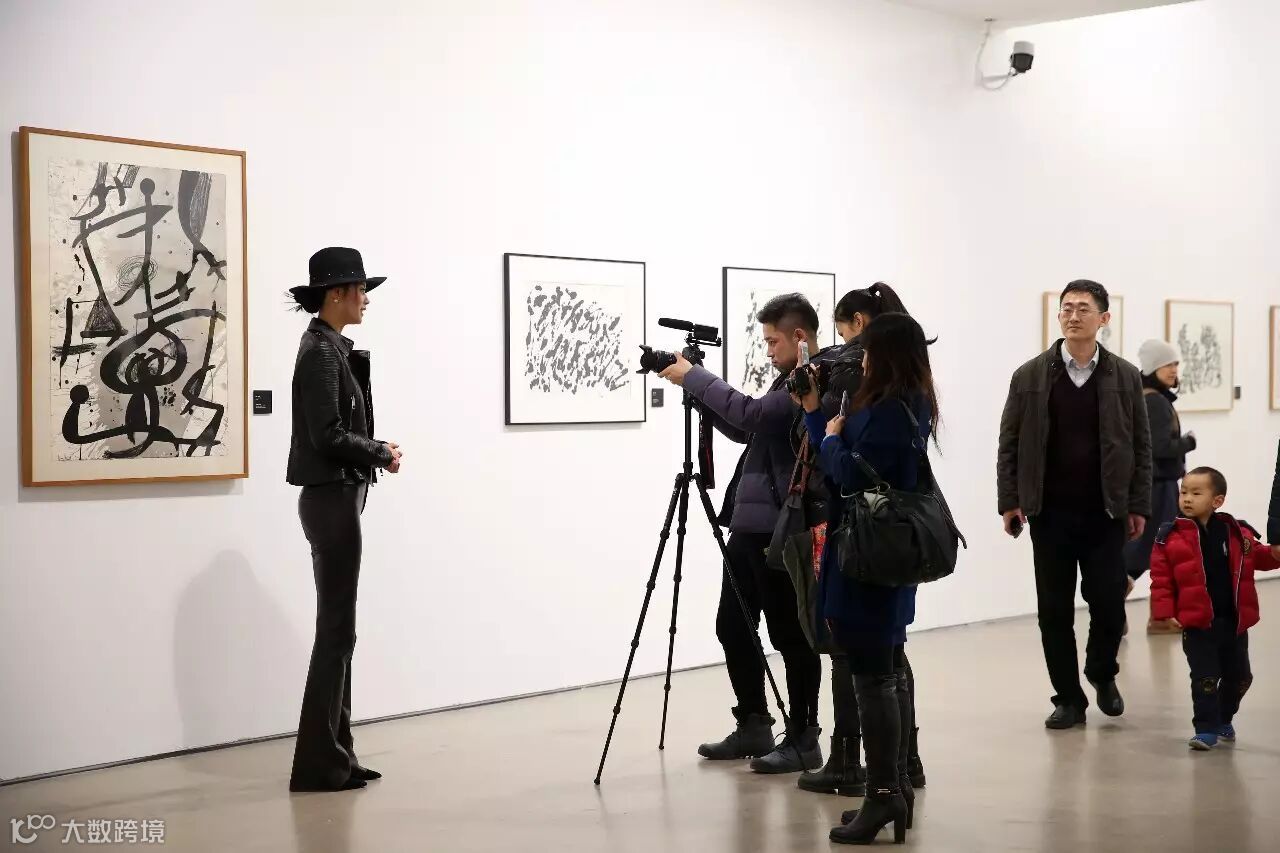 前世界小姐于文霞在米罗作品前接受采访